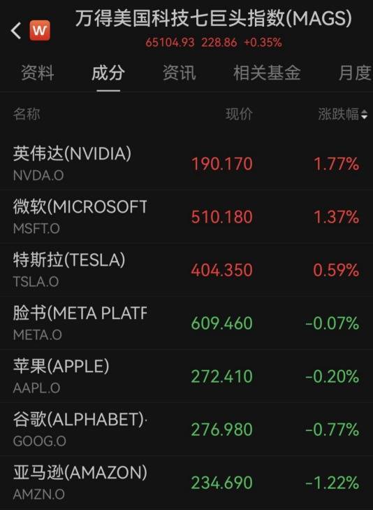 大型科技股涨跌互现,万得美国科技七巨头指数涨0.35%。英伟达涨1.77%,微软涨1.37%,特斯拉涨0.59%;亚马逊跌超1%,谷歌-C跌0.77%,苹果跌0.2%,Meta跌0.07%。
