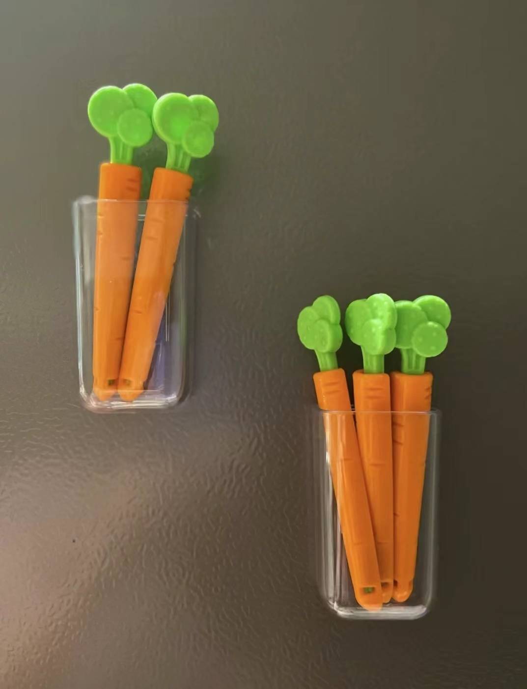 设计师可能也想到,毕竟是用在厨房的东西,得有点联系才有趣,所以想到将密封夹做成胡萝卜的样子。