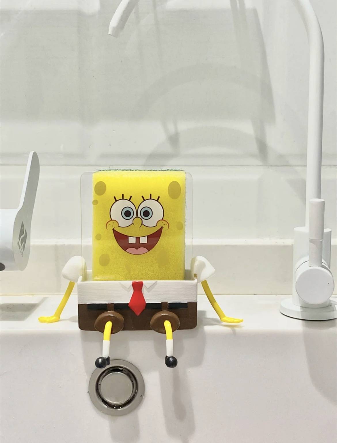 3、海棉宝宝沥水架能把洗碗棉变成海绵宝宝的人,也是绝了,一定非常有趣。