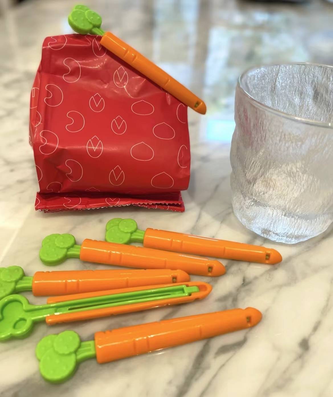 这样一来,任何需要密封的食品袋,用小胡萝卜夹夹上,不仅密封的效果有了,放在厨房也是协调可爱。