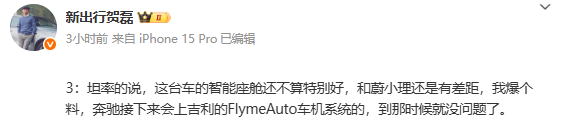【CNMO科技消息】11月6日,有汽车博主爆料称,奔驰新车将会采用吉利的Flyme Auto车机系统。不过,其并未透露具体车型。据媒体统计,截至10月15日,Flyme Auto已成功搭载于吉利银河、领克等品牌28款车型,累计用户突破150万大关,更以连续11个月生态用户增速领跑行业。