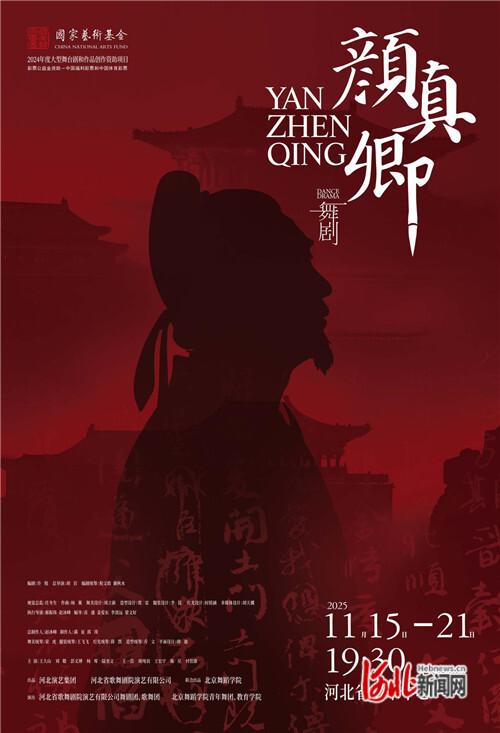 河北新闻网讯(毛宇)11月15日至21日,国家艺术基金2024年度大型舞台剧和作品创作资助项目——舞剧《颜真卿》石家庄站首演,将在河北省艺术中心大剧院上演。