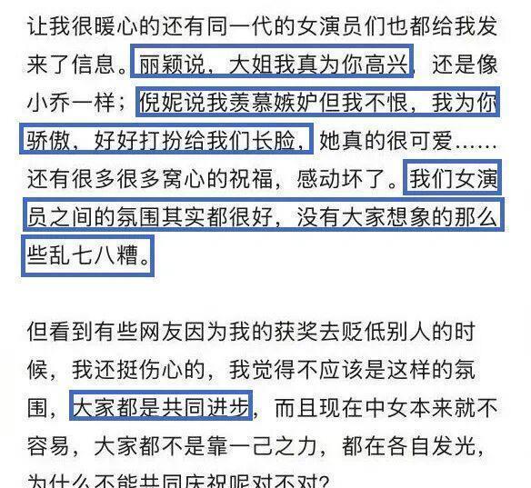外界总会给女性贴上“心机”“嫉妒”等标签。 尤其在竞争激烈的娱乐圈,女演员们的相处也自然而然地被营造出一种高度暗暗较劲的氛围。 但实际上,看着跟彼此有着相同梦想,也同样努力的女演员走上梦想中的舞台。 她们的情绪,更多的是欣喜、祝福与骄傲。
