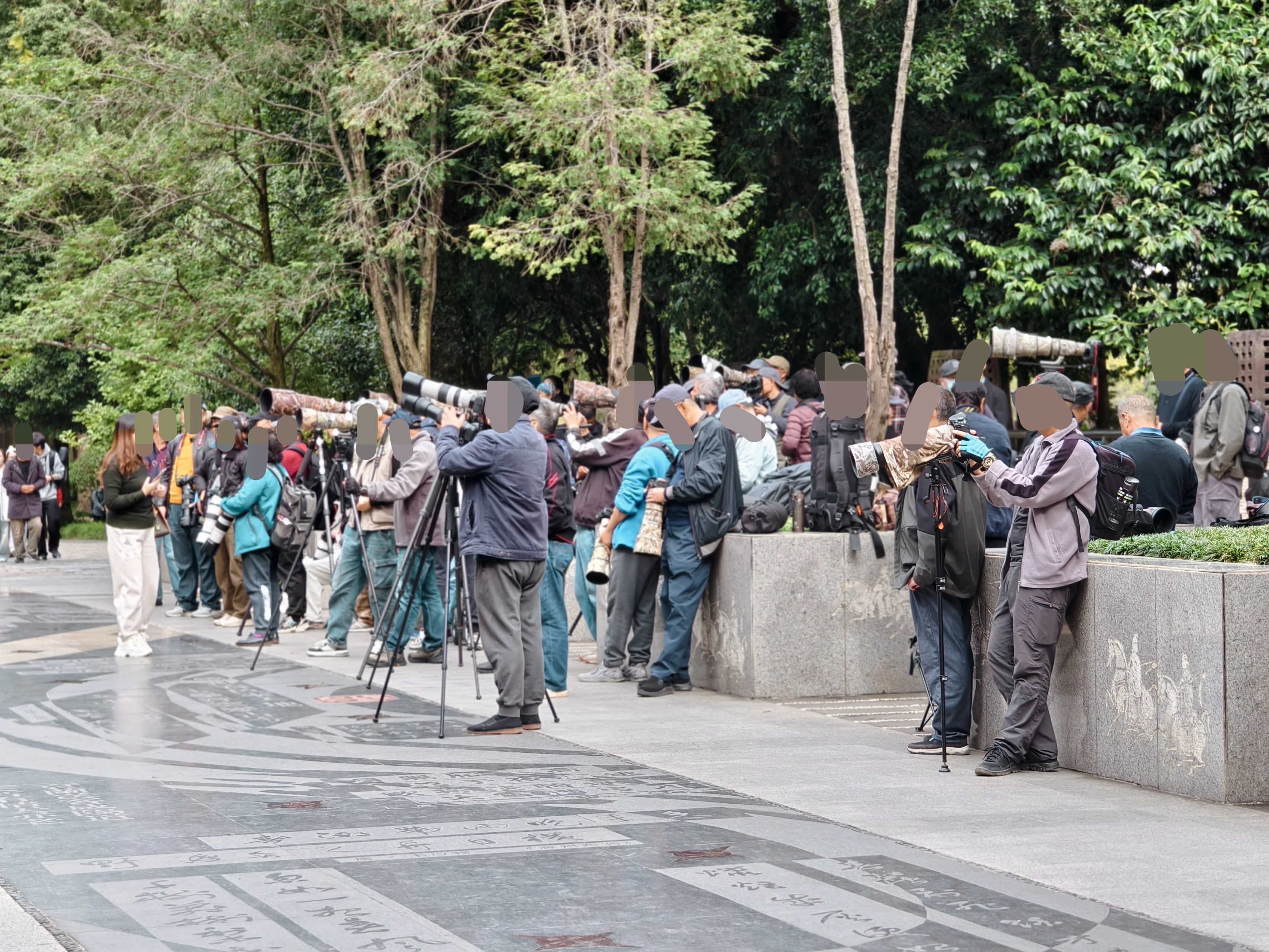 市民彭先生说,11月8日下午一点过,在浣花溪公园玻璃桥附近,他看到一群中老年摄影爱好者手持长焦镜头和三脚架聚集在一起,他们统一对准同一方向专注拍摄。