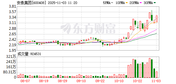 安泰集团再度涨停,13个交易日内录得7个涨停,累计涨幅为39.59%,累计换手率为279.56%。截至9:40,该股今日成交量7255.27万股,成交金额2.43亿元,换手率7.21%。最新A股总市值达34.43亿元。