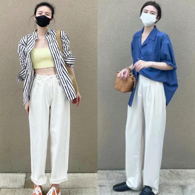 今年春季满流行条纹衬衫,其中黑白、蓝白、灰白条纹都特别显白,而且看起来还大气高级,单穿帅气洒脱,也可以当作防晒衫来穿,更休闲一些。