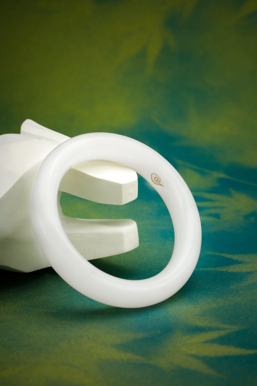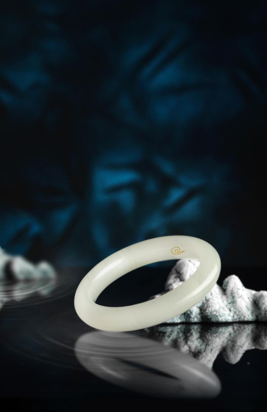 在本次展览中,七彩云南首次将原创专利设计产品合璧镯亮相珠宝展,作品设计灵感来源于新石器时代出土的双联璧。相传双联璧是上古神话中女娲和伏羲的定情信物,代表了上古神仙的旷世绝恋和人与自然的深刻羁绊。合璧镯在双联璧的形制基础上,探寻最佳舒适度,不同于以往的圆棍手镯与扁口手镯,经过数百次的打板、试戴,最终创造了“外弧饱满,内弧微凸”的全新镯型,开创手镯镯型3.0时代!手镯内壁以非物质文化遗产——古法错金工艺,雕刻代表七彩云南的祥云LOGO,是传统与创新的碰撞,谱写金与玉的传世佳话。