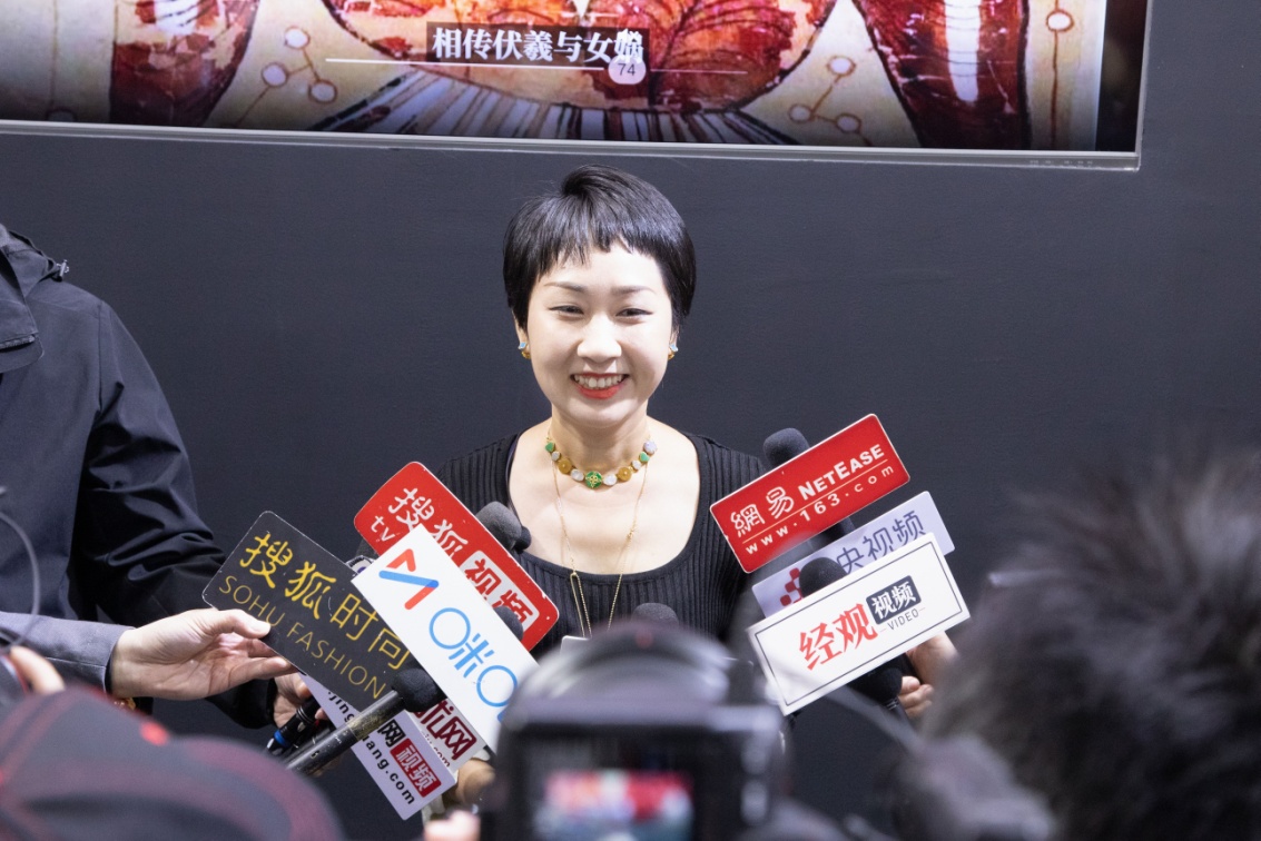 现场,七彩云南设计总监陈瑾接受媒体采访表示“七彩云南一直努力传播玉文化、发扬中国传统文化、传承民族精神。在今后的道路上我们要不断实践发展民族文化,不断的推陈出新,为中国玉文化的传播添砖加瓦,为中国宝玉石行业发展贡献更多的原创力量。”
